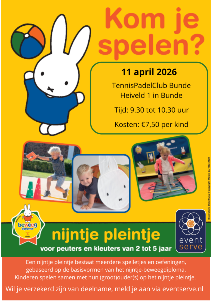 Op zaterdag 11 april organiseren we een vrolijk en leerzaam Nijntje Beweegpleintje bij TennisPadelClub Bunde!