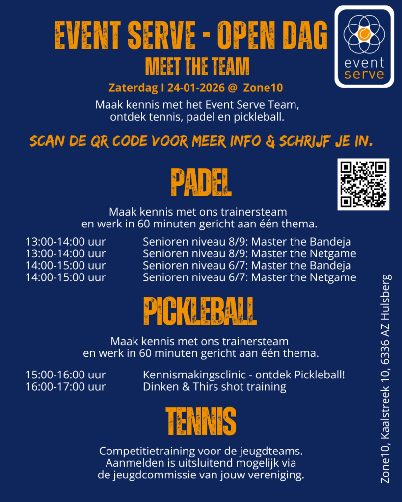 Maak kennis met het Event Serve Team, ontdek tennis, padel en pickleball.