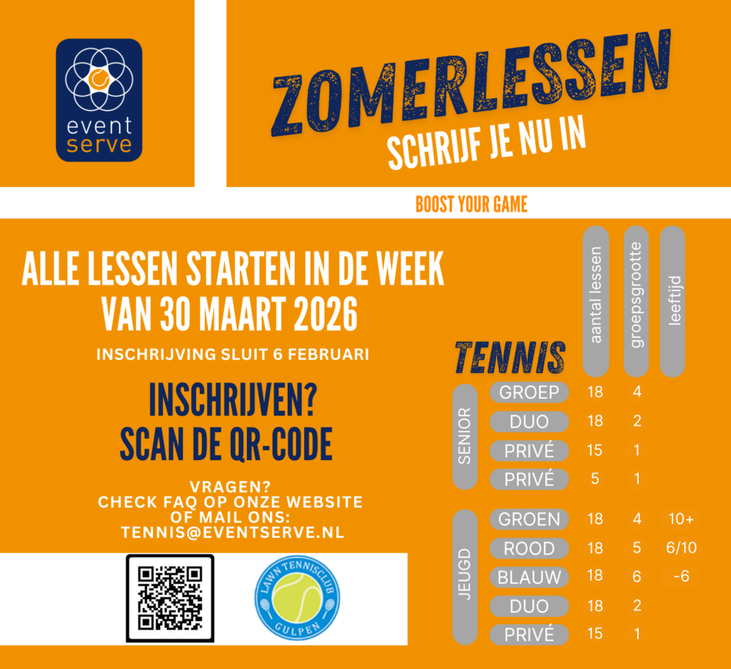 Alle lessenreeksen starten in de week van 30 maart 2026.